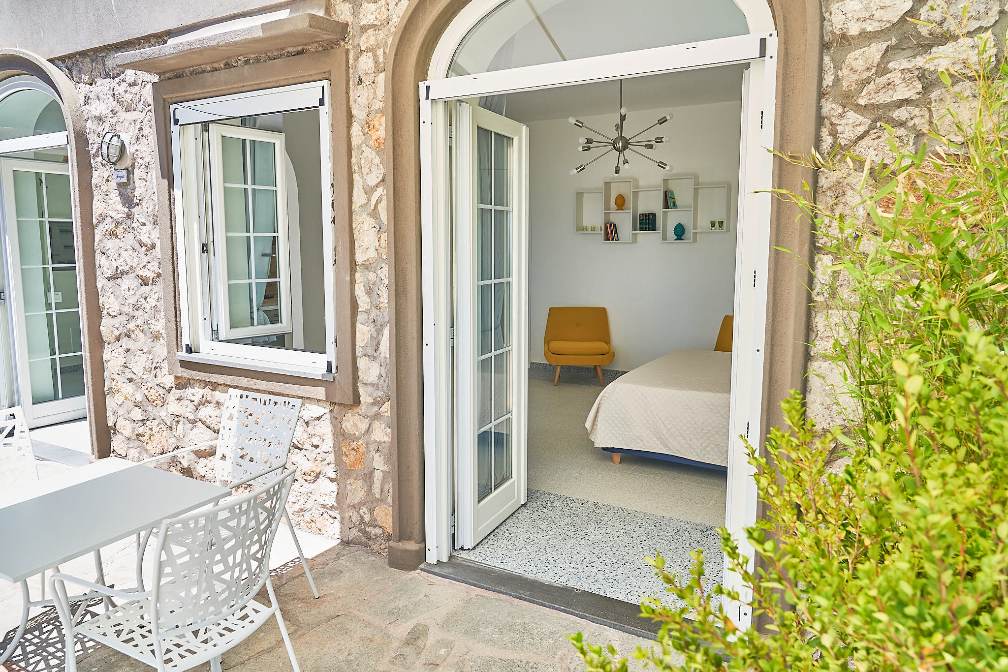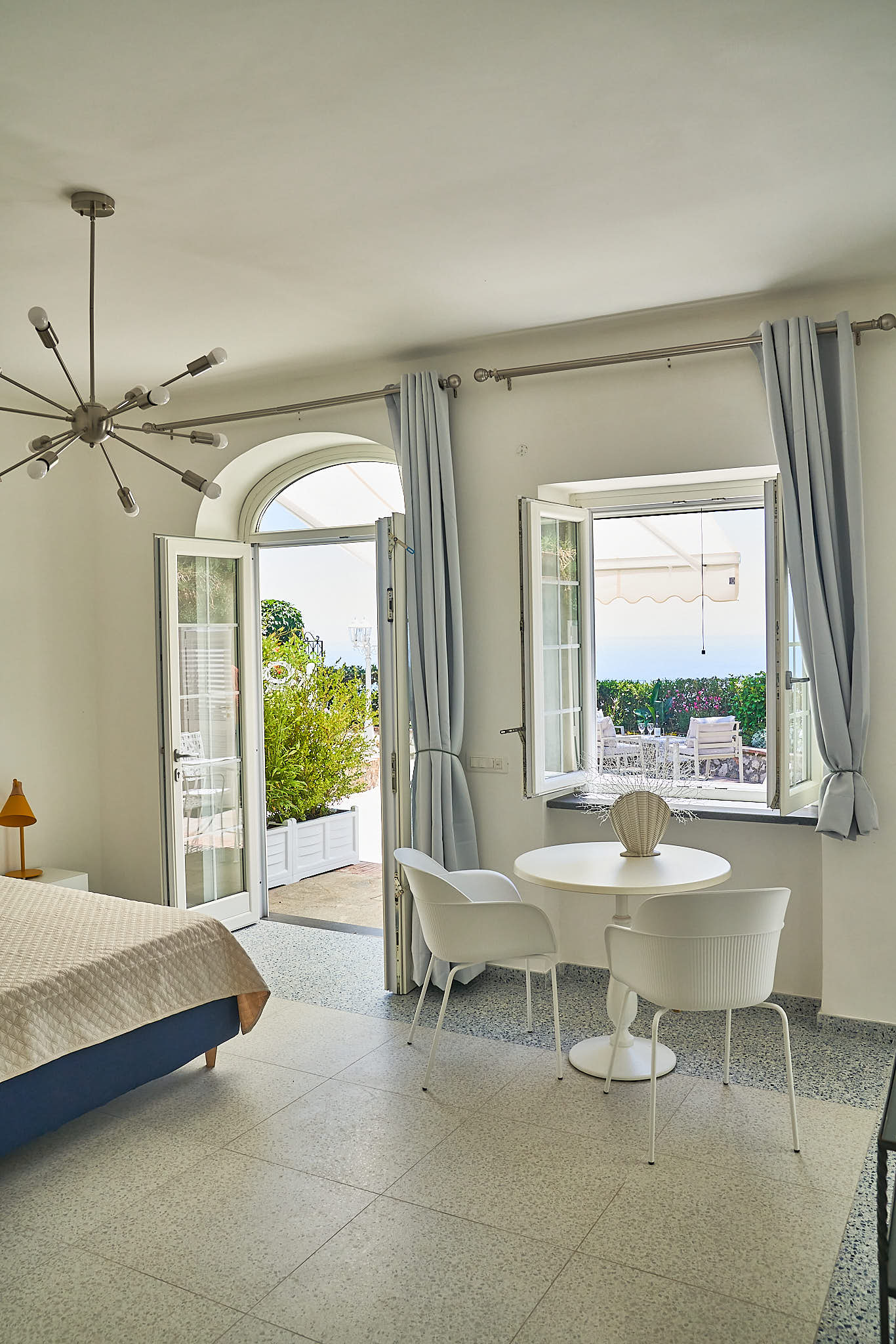 La camera Acqua di 38 mq dispone di un’ampia camera da letto con vista , bagno con doccia accessoriato e una cucina attrezzata . Ideale quindi anche per soggiorni più lunghi . Ampia terrazza vista mare dove ai clienti verrà servita la colazione e dove si potrà passare ore in pieno relax.